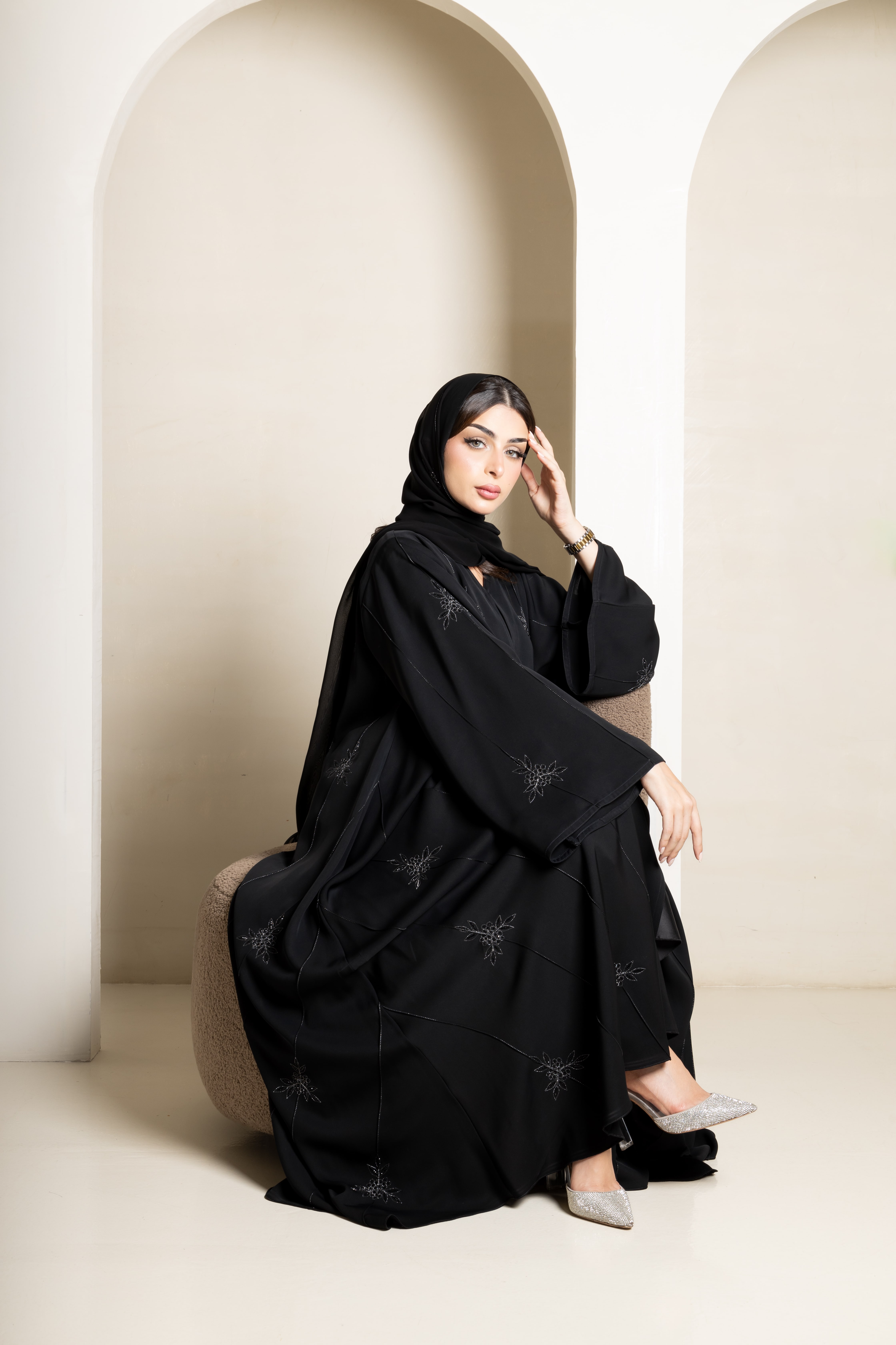 العباية الاكثر مبيعا نوع القماش : ندى الاصلي نوع القصة : كلوش أزرار - بدون أزرار شامل الشيلة : نعم قياس الشيلة : ٢٨* مترين