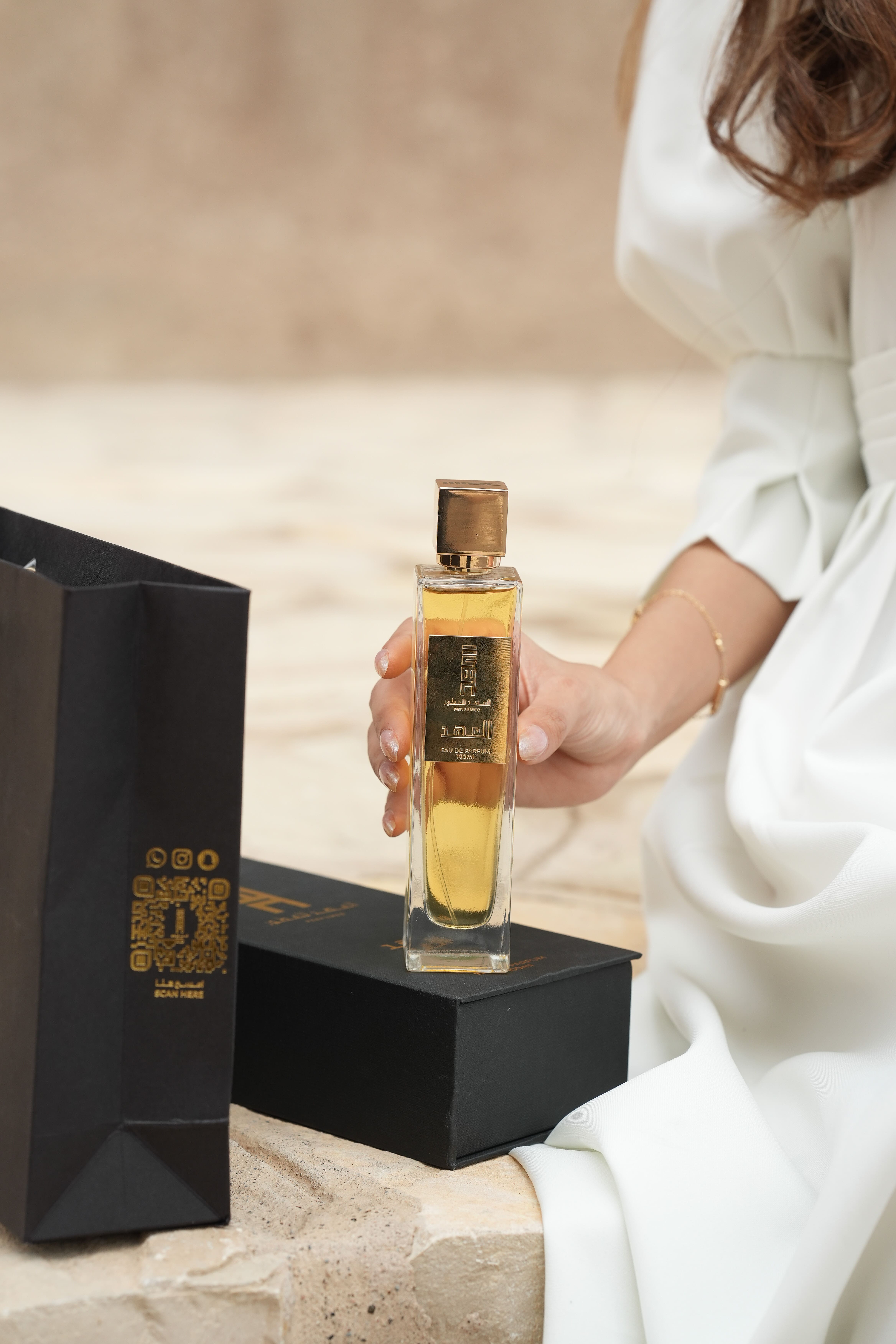 عطر العهد مزيج فاخر بين الجلود والتوابل واللابدانوم مع خلطة إيطالية سحرية يدوم ثباته ٤٨ ساعه واكثر